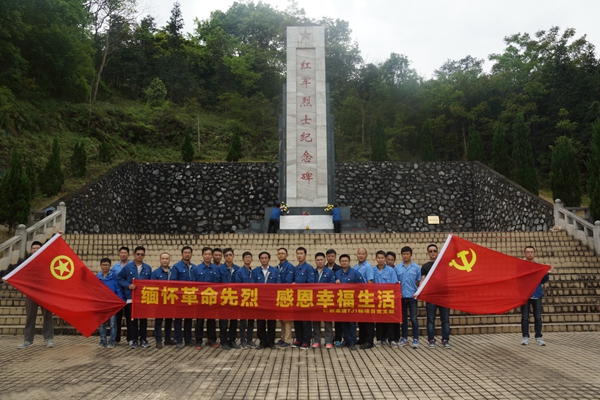 銅鼓嶺紅軍烈士紀(jì)念碑是為紀(jì)念紅軍在長(zhǎng)征途中經(jīng)過廣東省仁化縣城口鎮(zhèn),阻擊敵軍而英勇獻(xiàn)身的烈士們所建。項(xiàng)目黨支部副書記張正勇帶領(lǐng)全體黨員重溫了入黨誓詞,向革命英雄敬獻(xiàn)了花籃,并瞻仰了革命烈士紀(jì)念碑、烈士事跡紀(jì)念墻等。