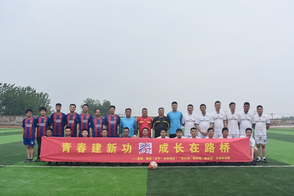 為加強分子公司間交流,促進公司“家”文化建設, 5月4日,道路、路面兩家單位在合寧高速改擴建05標組織開展以“青春建新功 成長在路橋”為主題足球友誼賽。道路分公司黨總支副書記王秋華、總工程師鄧光文出席開幕式并與員工同場競技。