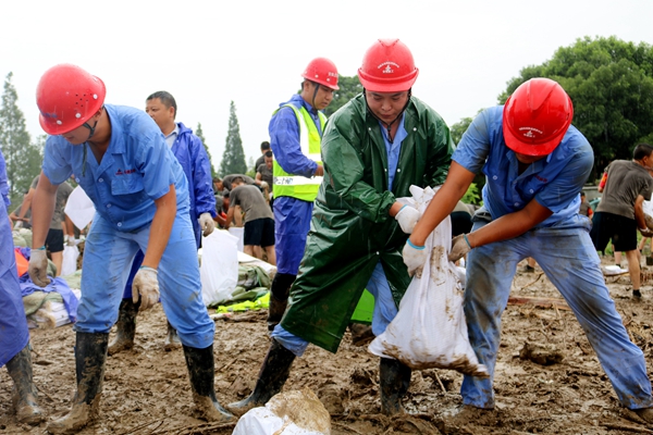 7月23日,路面公司組建的防汛抗洪搶險救援隊在完成同大圩保衛(wèi)戰(zhàn)后,又快速集結隊伍,冒雨逆行,轉(zhuǎn)戰(zhàn)增援紫荊村小南河抗洪搶險,和正在參與抗洪搶險的解放軍官兵共同投入戰(zhàn)斗。連續(xù)6小時的冒雨奮戰(zhàn),共填裝轉(zhuǎn)運沙袋5000多只,成功完成強固堤壩任務,比預定時間提前了近兩小時。
