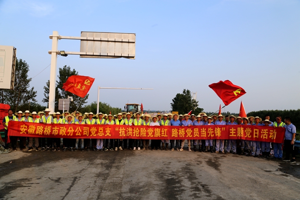 在這場抗洪搶險(xiǎn)突擊中,市政分公司黨總支現(xiàn)場組織開展了一次主題為“抗洪搶險(xiǎn)黨旗紅 路橋黨員當(dāng)先鋒”的黨日活動(dòng),號(hào)召所屬黨支部和廣大黨員堅(jiān)守陣地,把黨組織的戰(zhàn)斗堡壘建在抗洪搶險(xiǎn)的最前沿。