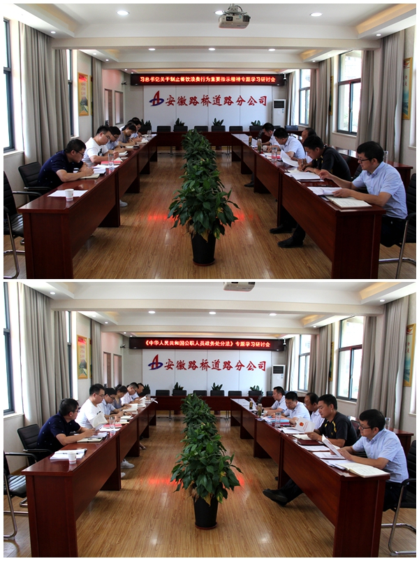 8月15日上午,道路分公司黨總支召開專題學(xué)習(xí)研討會(huì),深入學(xué)習(xí)貫徹落實(shí)習(xí)近平總書記關(guān)于制止餐飲浪費(fèi)的重要指示精神和《中華人民共和國(guó)公職人員政務(wù)處分法》,分公司領(lǐng)導(dǎo)班子、總支委員及后勤部門負(fù)責(zé)人參加學(xué)習(xí)并結(jié)合實(shí)際開展研討。