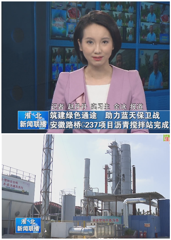 8月31日晚,《淮北新聞聯(lián)播》欄目以《筑建綠色通途 助力藍(lán)天保衛(wèi)戰(zhàn)》為題,報道了安徽路橋公司G237項目順利完成瀝青拌合站廢氣治理任務(wù),將綠色、環(huán)保、文明施工落到實處,以實際行動助力淮北市打贏藍(lán)天保衛(wèi)戰(zhàn)。