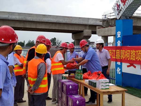 項目積極組織開展“消除事故隱患,筑牢安全防線”主題安全月活動,組織員工和一線作業(yè)人員觀看安全微電影,學習安全防護常識,提高安全防護意識。結(jié)合項目實際開展交通傷害應急演練,帶領(lǐng)一線作業(yè)人員學習交通傷害后的應急操作,提高一線作業(yè)人員應急知識儲備,提高應急處置能力。高溫天氣來襲,項目每天向一線作業(yè)人員發(fā)放十滴水、藿香正氣液等防暑降溫藥品和綠豆、白糖、礦泉水等防暑降溫物資,保障安全生產(chǎn),為大干快上保駕護航。