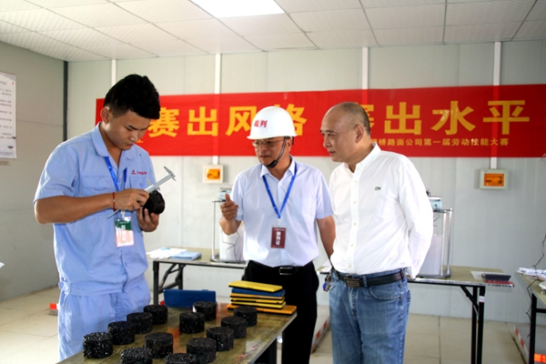為加強(qiáng)專業(yè)技術(shù)人才培養(yǎng),大力弘揚(yáng)工匠精神,建設(shè)知識(shí)型、技能型、創(chuàng)新型和實(shí)干型人才隊(duì)伍,9月28日上午,路面公司第一屆勞動(dòng)技能大賽之測(cè)量試驗(yàn)比賽在明巢高速05標(biāo)項(xiàng)目部成功舉辦。集團(tuán)公司工會(huì)女工委副主任饒曉寧,公司黨委委員、總工程師彭申凱,黨委委員、副總經(jīng)理杜海峰,工會(huì)主席楊建強(qiáng),黨委辦公室主任李靜波應(yīng)邀出席并觀看比賽。