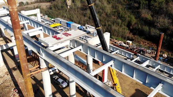 12月16日,蕪黃路基07標(biāo)項目兩項節(jié)點工程取得突破,下葉村特大橋鋼板組合梁橋面板順利完成首件安裝,馬鞍山隧道實現(xiàn)雙幅貫通,標(biāo)志著該項目控制性工程取得階段性勝利,朝著2021年建成通車目標(biāo)邁進了堅實一步。