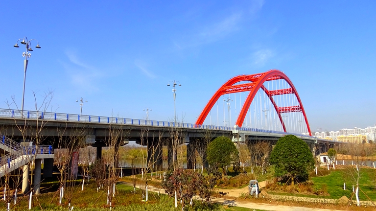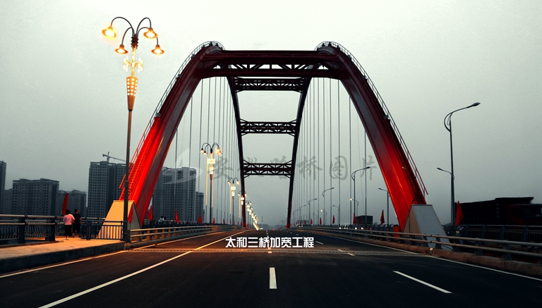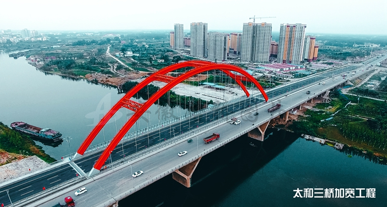 105國道(三角元至太和段)太和潁河三橋加寬工程于2015年8月開工,2017年7月順利交工。橋梁全長576.53米,主橋全寬23.2米,引橋全寬19.5m,主跨為152米下承式鋼管砼系桿拱橋,引橋為30m箱梁結構,下部結構采用柱式墩,鉆孔灌注樁基礎,設計荷載等級為公路-I級。該項目建成通車以來,有效改善了太和縣城潁河兩岸的交通狀況,對加快城鎮(zhèn)化建設起到了重要作用。