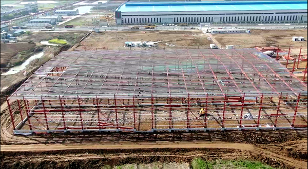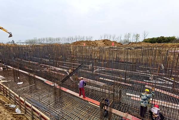 2021年1月4日,在基地藍(lán)圖繪就的基礎(chǔ)上,廠房和辦公生活設(shè)施項(xiàng)目部進(jìn)場(chǎng)施工。他們克服了土地征收、連續(xù)多雨天氣、拆遷困難、樹木砍伐等不利因素,發(fā)揚(yáng)“特別能吃苦、特別能戰(zhàn)斗”的企業(yè)作風(fēng),解決了一個(gè)又一個(gè)棘手的問(wèn)題,加班加點(diǎn)推進(jìn)基地基礎(chǔ)設(shè)施建設(shè)。截至3月底,吳山產(chǎn)業(yè)化基地項(xiàng)目3#管片生產(chǎn)車間地基基礎(chǔ)、短柱、框梁施工完成100%;3#管片生產(chǎn)車間鋼柱、鋼梁等主體結(jié)構(gòu)安裝完成70%,拌合站主機(jī)、粉煤灰罐基礎(chǔ)完成100%。