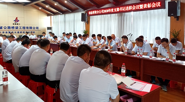 5月29日,市政分公司2020年度黨支部書記述職評(píng)議暨表彰會(huì)議在引江濟(jì)淮繁華大道橋項(xiàng)目部召開,分公司領(lǐng)導(dǎo)班子成員、分公司后勤部門負(fù)責(zé)人及所屬各項(xiàng)目支部負(fù)責(zé)人、項(xiàng)目經(jīng)理和部分職工代表80余人參加會(huì)議。