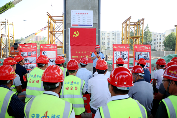 7月21日下午,合肥市總工會到暢通二環(huán)(西南環(huán))項目舉辦黨史學習教育“進工地”活動,全國五一勞動獎章獲得者夏力為30多名工友作主題宣講。