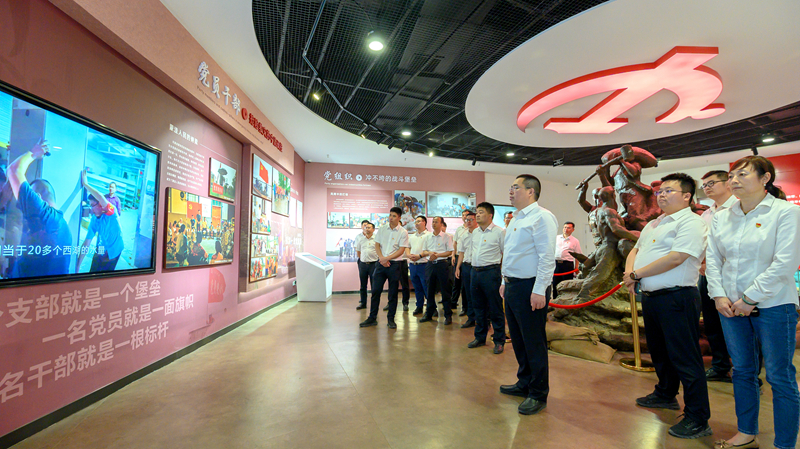在調(diào)研交流環(huán)節(jié),全體人員先后參觀了項(xiàng)目預(yù)制梁場(chǎng)、阜南南互通施工現(xiàn)場(chǎng),實(shí)地查看了項(xiàng)目標(biāo)準(zhǔn)化建設(shè)、安全文明施工和技術(shù)工藝運(yùn)用情況,并在項(xiàng)目會(huì)議室圍繞推動(dòng)黨建生產(chǎn)深度融合、加強(qiáng)人才隊(duì)伍建設(shè)和深化項(xiàng)目基礎(chǔ)管理等方面開展了座談交流。在參觀踐學(xué)環(huán)節(jié),全體人員來(lái)到被稱為“千里淮河第一閘”的王家壩閘,重溫習(xí)近平總書記考察安徽重要講話指示精神。在講解員的帶領(lǐng)下,大家通過觀看《王家壩紀(jì)錄片》和參觀王家壩抗洪紀(jì)念館內(nèi)的7個(gè)展廳,全面了解蒙洼群眾的抗洪歷史,深入領(lǐng)會(huì)王家壩精神的豐富內(nèi)涵。