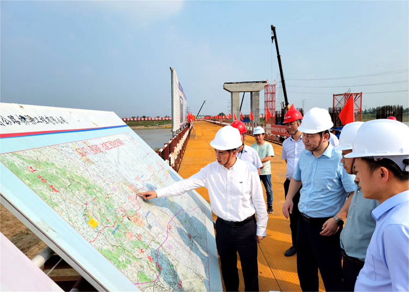 魏邦軍實地查看了姑溪河特大橋施工現(xiàn)場,聽取了關(guān)于工程概況、生產(chǎn)進度、安全管理等情況的匯報,詳細了解項目建設(shè)過程中存在的困難,對項目管理工作給予肯定。他強調(diào),要進一步明確時間節(jié)點、細化職責(zé)任務(wù)、強化協(xié)調(diào)聯(lián)動,加快推進征遷等工作,全力保障項目順利推進;要緊盯工期進度,強化施工組織,搶抓晴好天氣,確保順利完成階段通車目標;要高度重視現(xiàn)場安全管理,全面落實安全管理各項措施,嚴防各類風(fēng)險隱患,全力打造平安工程。