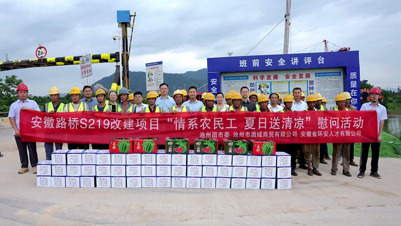 7月7日下午,共青團(tuán)池州市委書記寧睿到公司承建的S219青陽改建項(xiàng)目開展團(tuán)的十九大精神宣講,并開展“送清涼”慰問活動。