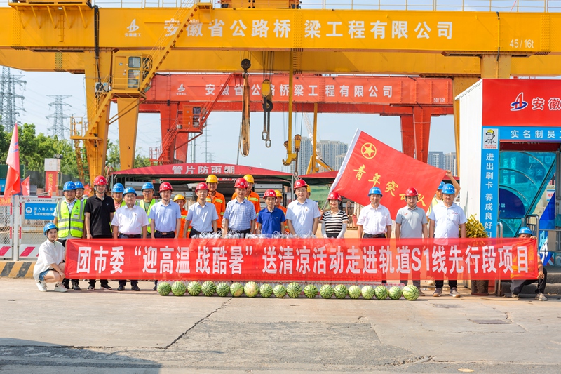 合肥團(tuán)市委、市城鄉(xiāng)建設(shè)局赴合肥新橋機(jī)場(chǎng)S1線(xiàn)項(xiàng)目開(kāi)展“送清涼”慰問(wèn)活動(dòng)