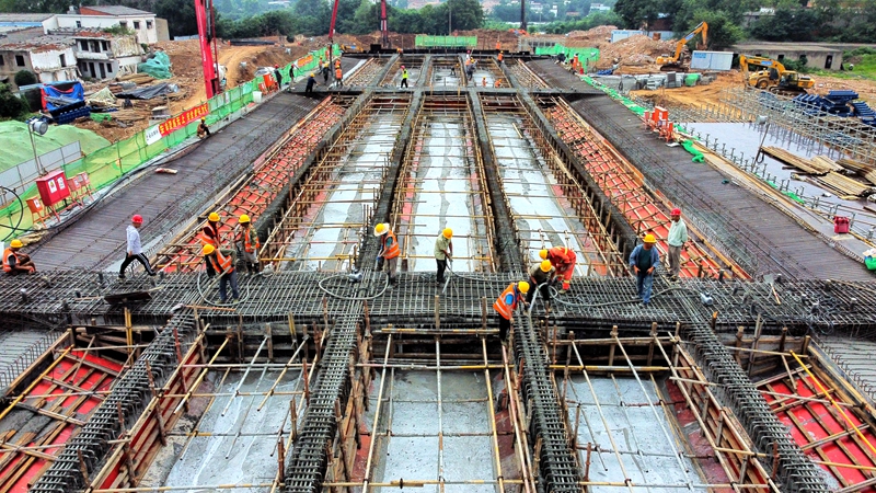 中秋、國慶“雙節(jié)”期間,在信陽市新十一大道項(xiàng)目施工現(xiàn)場(chǎng),數(shù)百名工人和幾十臺(tái)大型機(jī)械正在緊張有序地進(jìn)行鋼筋綁扎、梁板澆筑等施工作業(yè),項(xiàng)目全體建設(shè)者不畏艱難、頑強(qiáng)拼搏,用激情和汗水詮釋責(zé)任和擔(dān)當(dāng),用專業(yè)和實(shí)干詮釋“路橋皖軍”品牌。