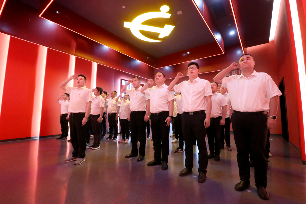 在宣誓廳內,全體黨員還重溫了入黨誓詞。