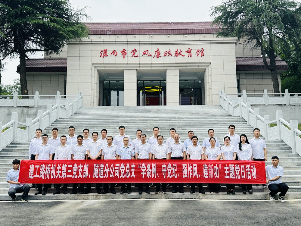6月27日,機(jī)關(guān)第三黨支部和隧道分公司黨總支到淮南市聯(lián)合開展“學(xué)條例、守黨紀(jì)、強(qiáng)作風(fēng)、建新功”主題黨日活動(dòng)。公司黨委委員、副總經(jīng)理韋秀剛以普通黨員身份參加活動(dòng)。