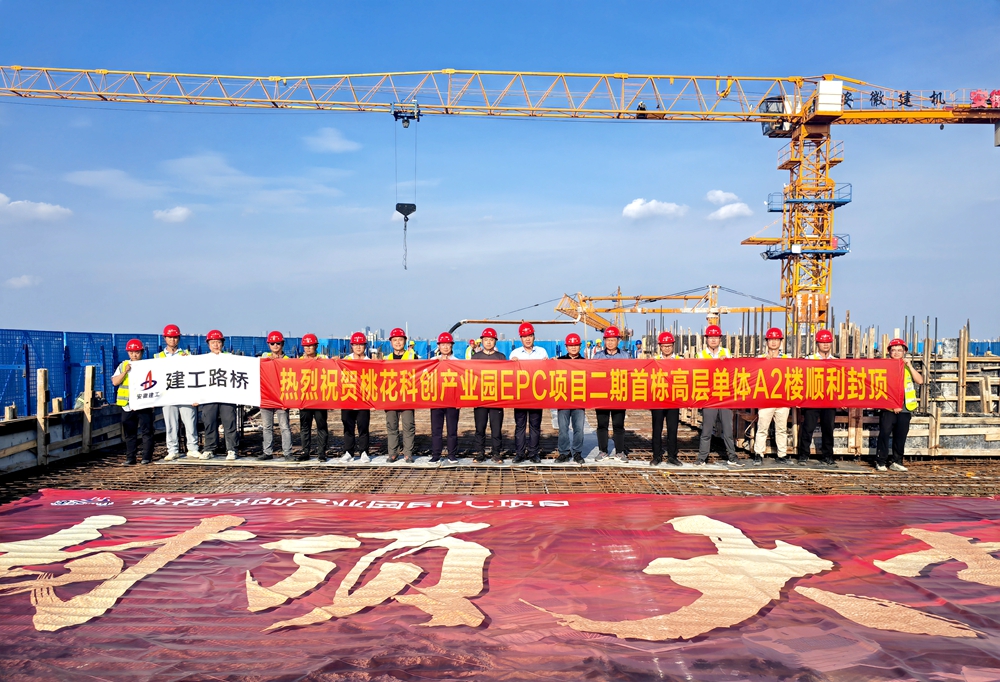首棟封頂!桃花科創(chuàng)產(chǎn)業(yè)園項目二期首棟高層單體A2#樓主體結(jié)構(gòu)封頂