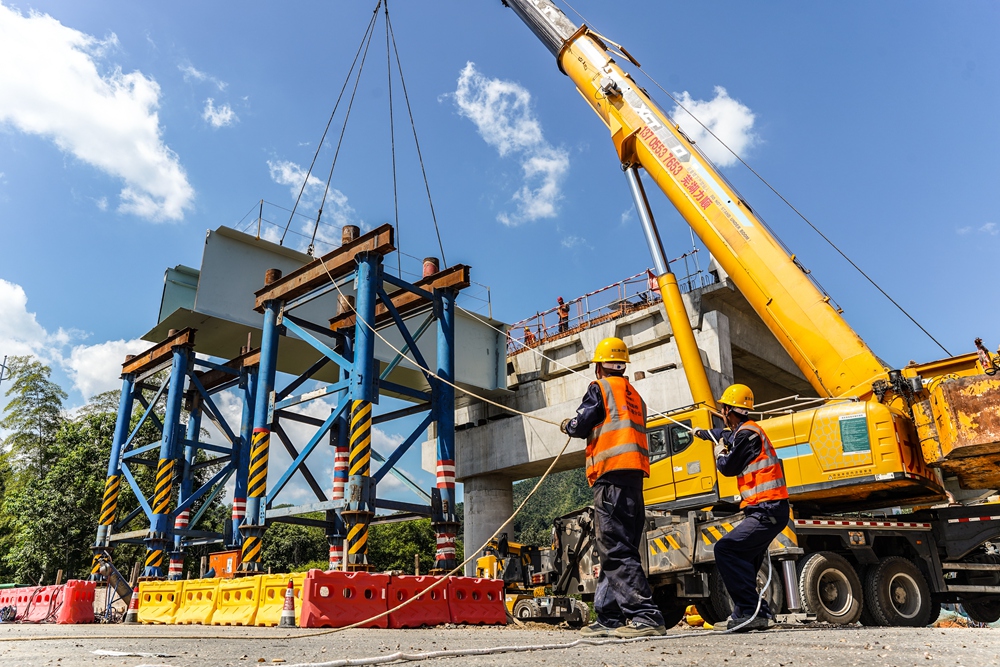 首件鋼箱梁長(zhǎng)11.4米,跨G205國(guó)道,涉路施工壓力較大。施工過程中,項(xiàng)目積極對(duì)接當(dāng)?shù)亟痪炔块T,做好交通導(dǎo)改,有效保障了鋼箱梁安全架設(shè)。