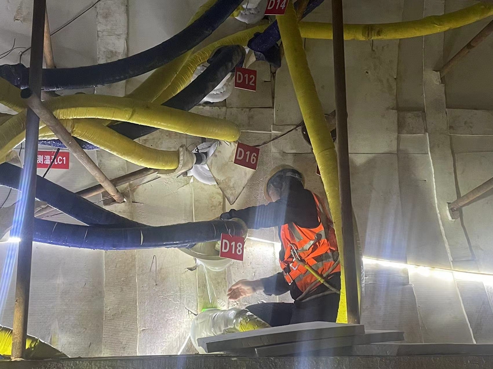 “形象地說,冷凍系統(tǒng)就好似一個(gè)不停機(jī)的冰箱,冷凍鹽水始終在-30℃左右把土體冷凍成堅(jiān)硬的‘冰棍’,增加其強(qiáng)度和穩(wěn)定性。同時(shí)這種人工制冷技術(shù)適應(yīng)面廣、安全可靠、污染性小,而且完全不用抽排地下水,一定程度上也減少了地下水資源的浪費(fèi)”,項(xiàng)目負(fù)責(zé)人宋廣輝介紹。
