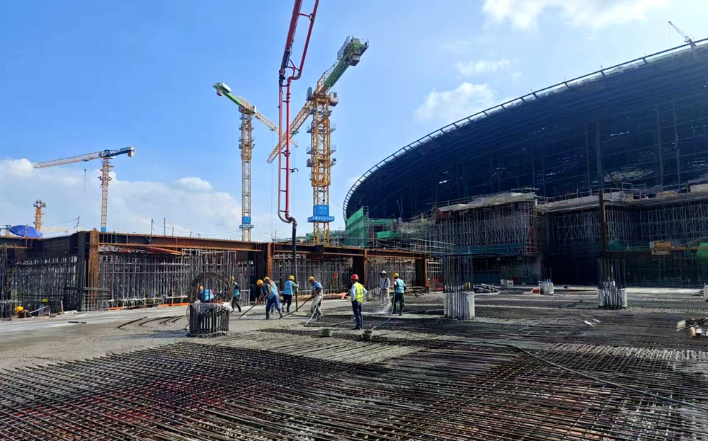 8月29日,合肥新橋國際機場綜合交通中心項目GTC A4-1區(qū)空腔層結(jié)構(gòu)混凝土澆筑完成。