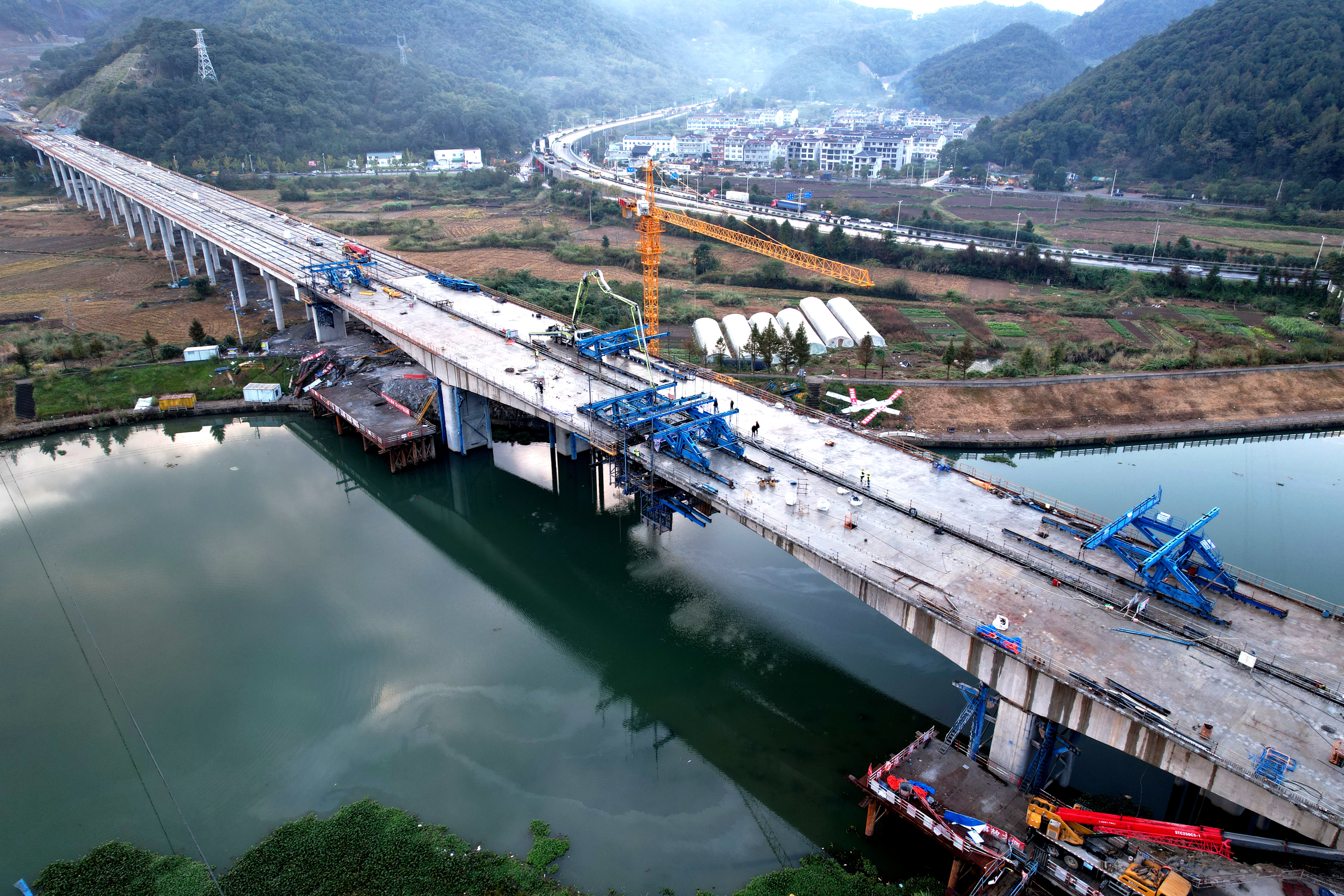 至此,亭旁溪大橋懸臂現(xiàn)澆梁施工全部完成,項目全線土建工程邁入收尾階段。