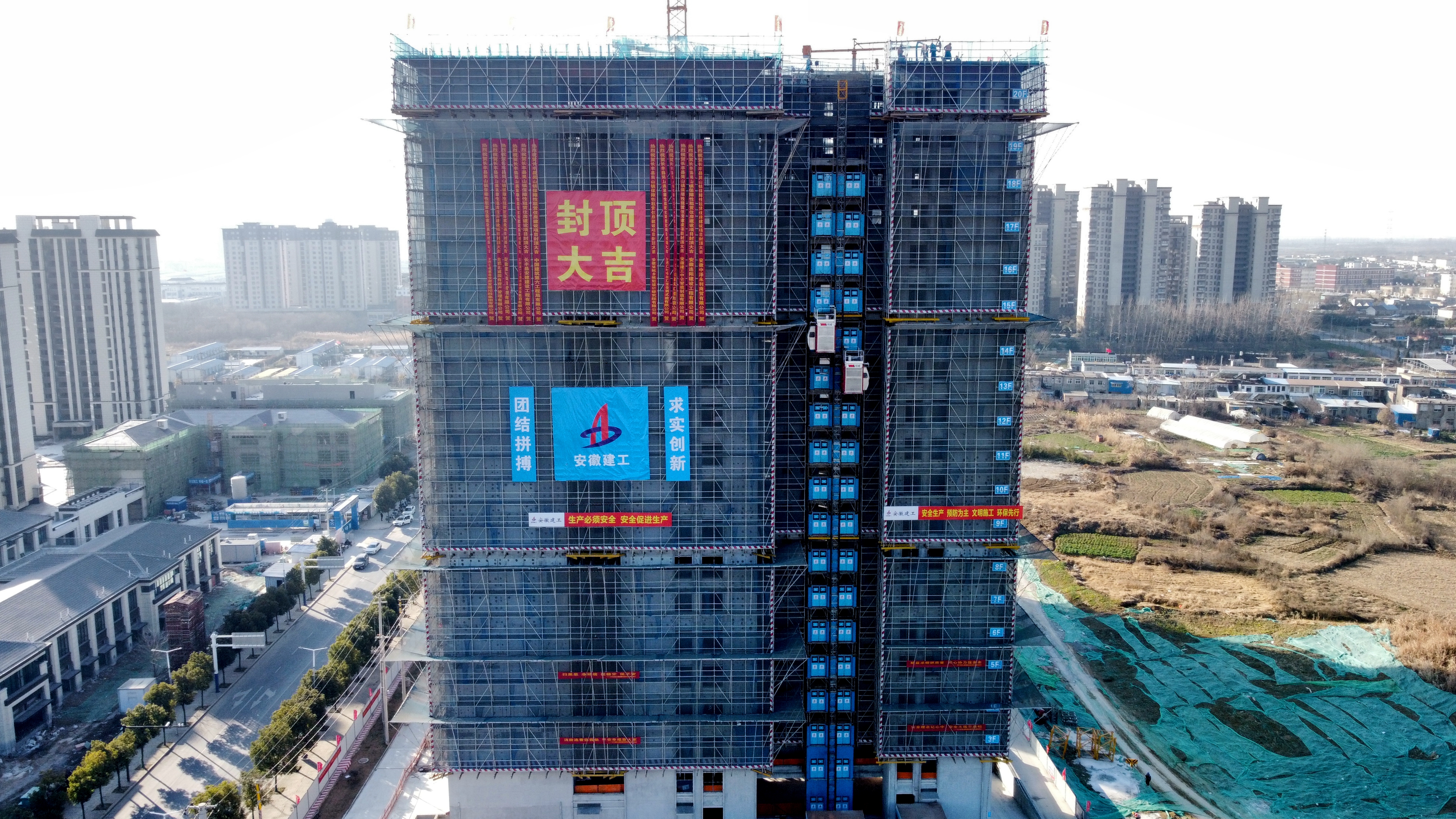 項(xiàng)目占地面積約20.5畝,總建筑面積38434平方米,裝配率50%,其中2#樓建筑高度72.65米。自開工以來,項(xiàng)目團(tuán)隊(duì)科學(xué)規(guī)劃,克服多重困難,以“六天一層”的建設(shè)速度,歷時5個月圓滿實(shí)現(xiàn)主體結(jié)構(gòu)封頂目標(biāo)。