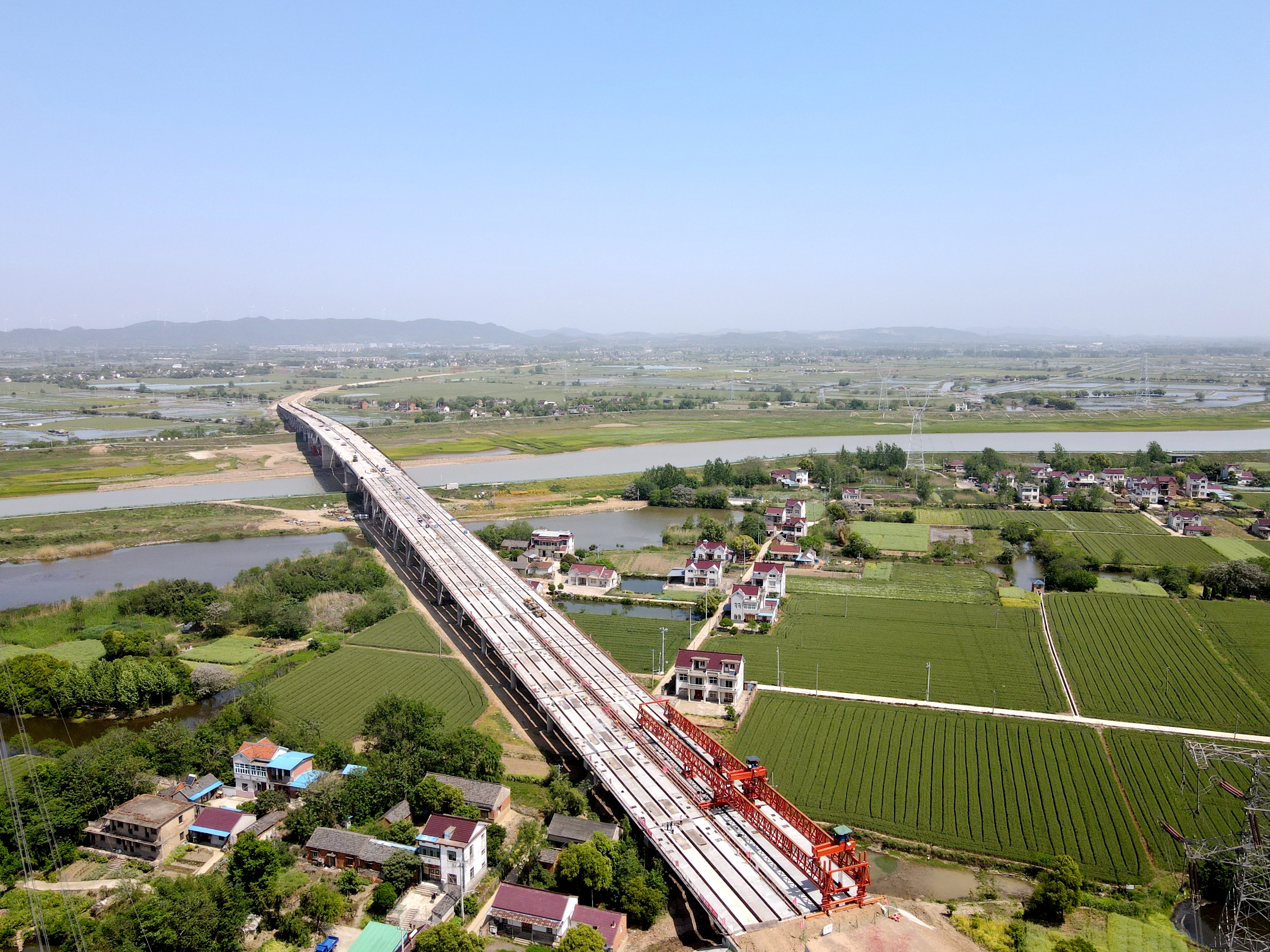 S247改建四期項(xiàng)目全長(zhǎng)8.35公里,其中姑溪河特大橋長(zhǎng)1179米,主跨135米,是全線跨度最大、單體長(zhǎng)度最長(zhǎng)的橋梁,也是項(xiàng)目的關(guān)鍵控制性工程之一。為順利實(shí)現(xiàn)姑溪河特大橋全幅貫通,項(xiàng)目部提前謀劃、精細(xì)部署,加強(qiáng)統(tǒng)籌協(xié)調(diào)、嚴(yán)格現(xiàn)場(chǎng)管理、優(yōu)化資源配置,持續(xù)強(qiáng)化安全保障,對(duì)建、運(yùn)、提、架等關(guān)鍵工序?qū)嵤┤^(guò)程精細(xì)化管理,確保梁板架設(shè)優(yōu)質(zhì)高效推進(jìn)。