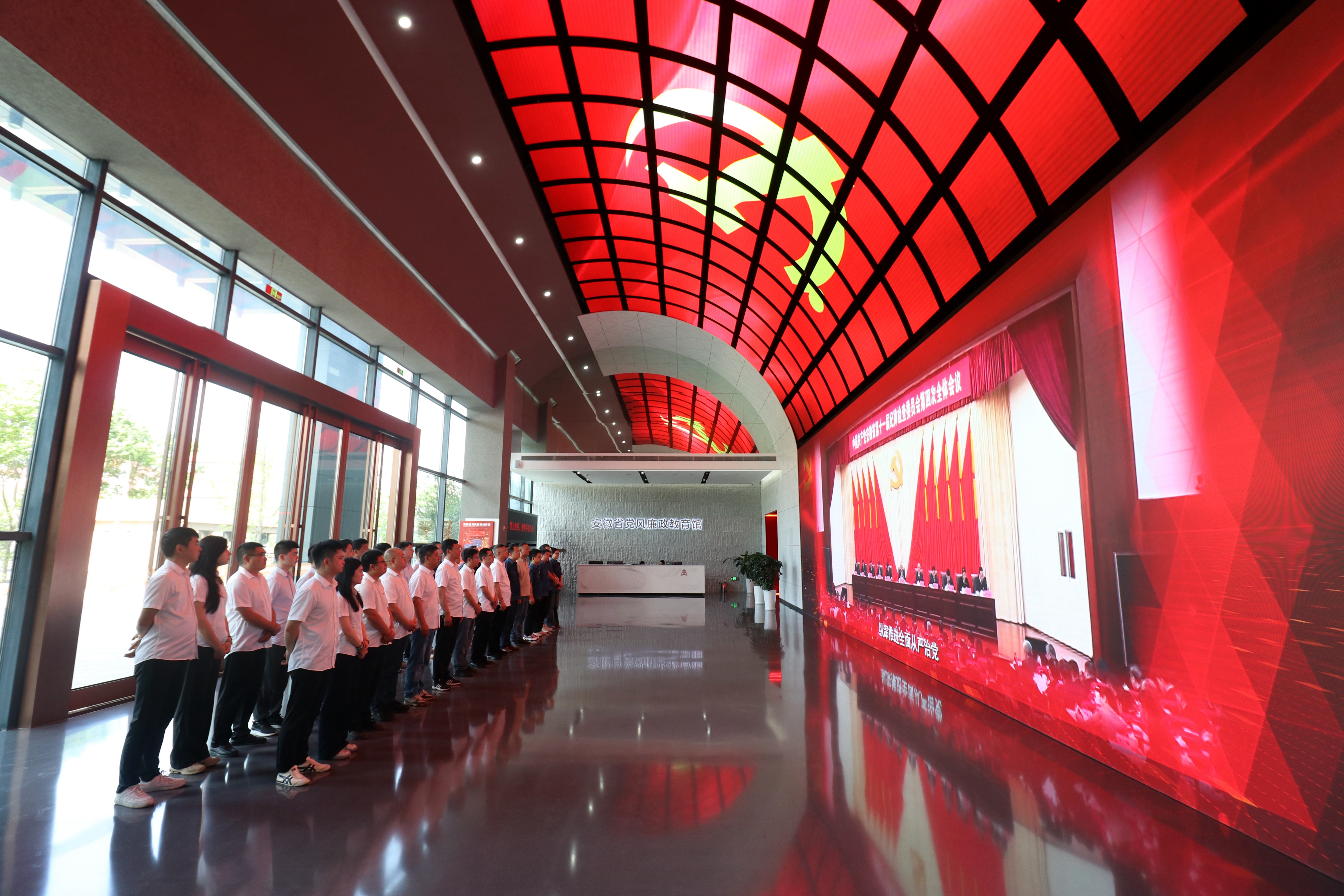 5月20日,橋梁公司領(lǐng)導(dǎo)班子率隊(duì)赴安徽省黨風(fēng)廉政教育館開展“沉浸式”主題黨日活動(dòng)。在講解員的引導(dǎo)下,全體同志集中觀看了反腐專題片《永遠(yuǎn)在路上》,認(rèn)真學(xué)習(xí)習(xí)近平總書記關(guān)于全面從嚴(yán)治黨的重要講話精神,依次沉浸式參觀“紀(jì)律立黨 從嚴(yán)治黨”“廉潤(rùn)江淮 清風(fēng)揚(yáng)帆”等主題展廳,通過(guò)案例再現(xiàn)、場(chǎng)景還原、沉浸式體驗(yàn)等方式,回顧了百年來(lái)我們黨在黨風(fēng)廉政建設(shè)和反腐敗斗爭(zhēng)中取得的成效,在觸目驚心的貪腐案例前強(qiáng)化敬畏意識(shí),實(shí)現(xiàn)警示教育從“平面”到“立體”的質(zhì)效提升。在宣誓廳,全體黨員面對(duì)黨旗重溫入黨誓詞,錚錚誓言與歷史回響共振,進(jìn)一步守牢初心使命。