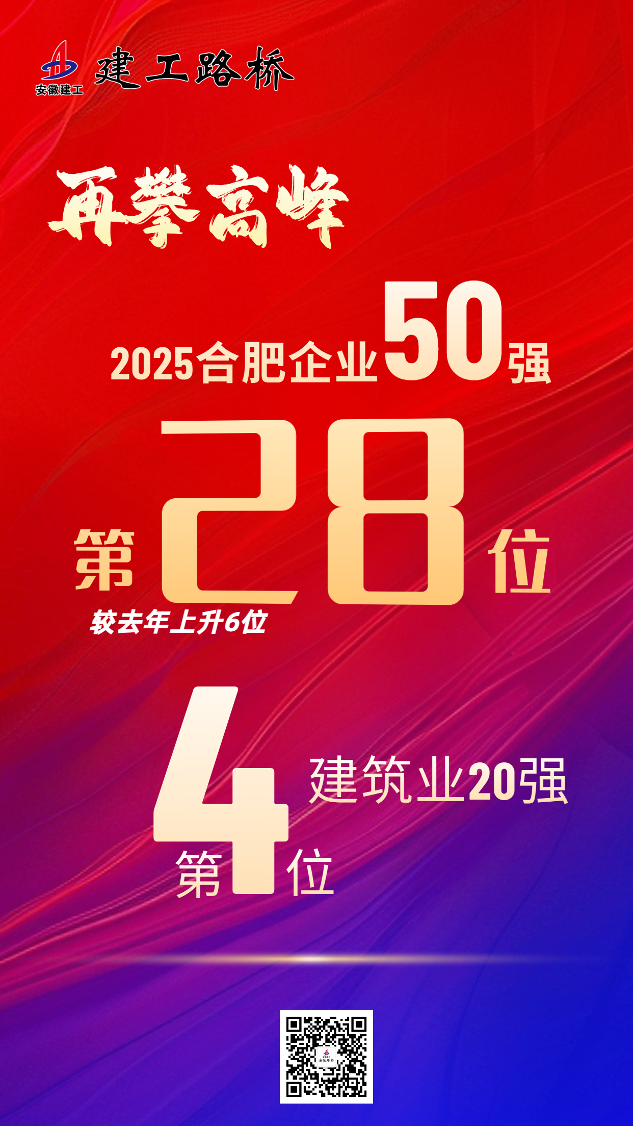 日前,合肥市企業(yè)(企業(yè)家)聯(lián)合會揭曉2025合肥企業(yè)50強(qiáng)及建筑業(yè)20強(qiáng)榜單。公司表現(xiàn)亮眼:位列合肥企業(yè)50強(qiáng)第28位,較去年躍升6位;位居合肥建筑業(yè)企業(yè)20強(qiáng)第4位,較去年提升1位。