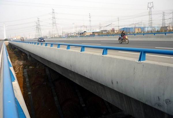 合安路出城口道路改建工程總造價(jià)1.47億元,公司承建了合安路互通立交主線橋和匝道橋。該橋全長(zhǎng)148米,寬70米,采取左右線方式跨越方興大道。07年5月開工,工期8個(gè)月,把合肥市區(qū)、濱湖新區(qū)、經(jīng)濟(jì)技術(shù)開發(fā)區(qū)和新橋機(jī)場(chǎng)等處的道路聯(lián)系在一起,極大地緩解區(qū)域交通壓力。公司在施工中,引進(jìn)旋挖鉆機(jī)等高新設(shè)備,通過采用新技術(shù)、新工藝、新材料,使適用性和經(jīng)濟(jì)性達(dá)到最佳結(jié)合點(diǎn),同時(shí)該工程也成為合肥南門出口處的一大亮點(diǎn)。