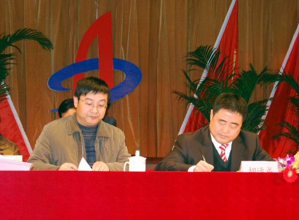 集團公司董事長、總經(jīng)理胡運成與公司總經(jīng)理汪衛(wèi)東簽訂2010年生產(chǎn)、經(jīng)營目標(biāo)責(zé)任書