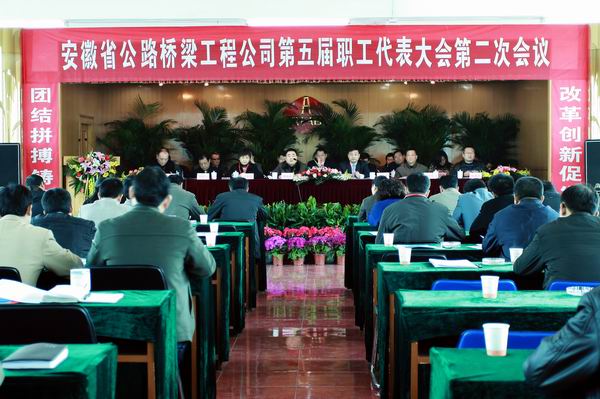 上午8:30,在莊嚴(yán)的國歌聲中,第五屆職工代表大會第二次會議正式開幕。會議由公司黨委委員、副總經(jīng)理、總工程師彭申凱主持。公司總經(jīng)理汪衛(wèi)東在會上作了題為《夯實管理基礎(chǔ),拓展發(fā)展空間,為推動安徽路橋快速發(fā)展而努力奮進》的工作報告。報告回顧總結(jié)了2009年工作。2009年是新世紀(jì)以來我國經(jīng)濟發(fā)展最為困難的一年。公司面對復(fù)雜快變的市場環(huán)境,在集團公司的科學(xué)指導(dǎo)下,主動適應(yīng)市場,搶抓機遇,呈現(xiàn)了平穩(wěn)較快發(fā)展的良好局面,譜寫了實現(xiàn)新崛起的動人篇章。公司先后榮獲安徽省建筑業(yè)企業(yè)五十強、合肥市委市政府文明單位等市廳級以上集體榮譽11項,形象大幅提升。全年新簽合同額14.7億元,同比增長20%,經(jīng)營業(yè)績再創(chuàng)新高。完成總產(chǎn)值約11.08億元,同比增長10.8%,施工產(chǎn)值再上新臺階。主營業(yè)務(wù)收入8.34億元,實現(xiàn)利潤總額530.3萬元,同比增長35.22%,資產(chǎn)保值增長率106.5%,經(jīng)濟效益穩(wěn)步增長。創(chuàng)“黃山杯”、“建工杯”各1項,各類科技進步獎(工法)8項,創(chuàng)建安全文明示范工地5個,連續(xù)三年無重大安全和質(zhì)量事故。