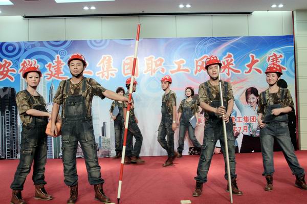 公司12名職工分別展示了三套服裝。第一套職業(yè)裝突破了傳統(tǒng)職業(yè)裝的局限,以背帶牛仔工裝褲為主,別具一格。再搭配安全帽、對講機(jī)等施工現(xiàn)場道具,將路橋的職業(yè)特性展示的淋漓盡致,在眾多參賽隊(duì)伍中獨(dú)樹一幟。第二套時(shí)裝,由六位女職工身著綴滿亮片的五彩短裙,在輕快動感的音樂下,充分展現(xiàn)了女職工的青春活力。第三套藝術(shù)裝,以晚禮服為主,四位男職工風(fēng)度翩翩,四位女職工婀娜多姿,凸顯了路橋兒女的別樣情懷。
