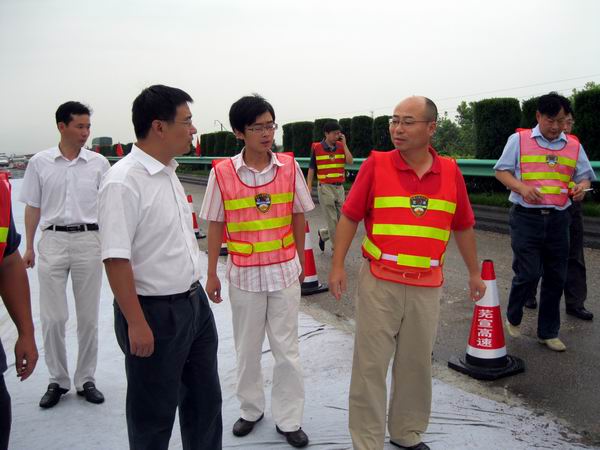 省交投集團(tuán)領(lǐng)導(dǎo)一行來到我部施工前場,在認(rèn)真聽取了我部關(guān)于工期、進(jìn)度及質(zhì)量的詳細(xì)匯報(bào)后,視察了原路面銑刨、局部水穩(wěn)破除或銑刨、混凝土澆筑、瀝青攤鋪等工作的施工進(jìn)展情況。省交投集團(tuán)領(lǐng)導(dǎo)指出,連續(xù)陰雨天氣給施工帶來了一定影響,我們在保障施工進(jìn)度的同時也要保證施工質(zhì)量。看到前場施工安全標(biāo)牌、錐標(biāo)擺放規(guī)范、有序,施工人員安全裝備齊全,視察組表示了滿意。視察小組說:“安全”和“質(zhì)量”始終是我們施工工作的排頭兵,它們之間互相依存、相輔相成,共同關(guān)系著我們施工工作的命脈,我們要始終緊抓不放。我項(xiàng)目經(jīng)理薛斌表示,在業(yè)主領(lǐng)導(dǎo)的大力關(guān)懷和正確指導(dǎo)下,我們一定會再接再厲,克服各種不利因素,“保安全”、“抓質(zhì)量”、“搶工期”,順利完成施工任務(wù)。