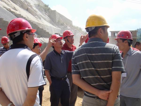 上午10:00,張廳長一行冒著酷暑抵達我部巖子腳特大橋施工現(xiàn)場。張廳長詳細詢問了當前工程的施工進展、安全質量管理情況和存在的問題,并重點詢問了巖子腳特大橋的施工情況,細心聽取了我部項目經理劉曉晗對工程進度、質量、安全管理等情況的簡單匯報,對我部積極采取措施克服困難加快工程進度所取得的成績給予了充分肯定。