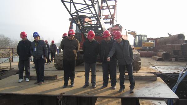 殷書記一行先后到箱梁預制場、鋼筋加工場、主墩鋼圍堰進行了現(xiàn)場查看,并聽取了該項目負責人關于項目施工管理情況的匯報。在座談會上,殷書記對項目部前期取得的成績給予了充分肯定,也指出了存在的不足。周科長就實地查看的情況進行了總結(jié),指出從目前檢查情況來看,路基11標在施工質(zhì)量上是下了功夫的,并鼓勵大家再接再厲,安全、優(yōu)質(zhì)、高效地完成這座特大橋的建設。