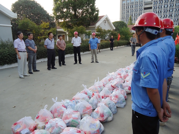 下午5時,寧世明副區(qū)長一行來到懷寧北路1標(biāo)施工現(xiàn)場,向冒著酷暑辛勤工作的廣大一線員工表示親切慰問。寧副區(qū)長關(guān)切的詢問員工們的生活情況及高溫天氣下的作業(yè)時間安排,并親手送上綠豆、白糖、純凈水、毛巾、風(fēng)油精等防暑降溫物品。寧副區(qū)長要求有關(guān)部門全力做好高溫季節(jié)各項工作,并叮囑工程負(fù)責(zé)人,無論工期多緊,也要做好安全生產(chǎn)工作,夏天氣溫高,要合理安排施工時間,在保證工程質(zhì)量、進(jìn)度的同時,確保工人們勞逸結(jié)合,身體健康。