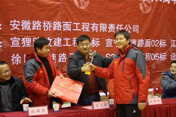 簡(jiǎn)短而隆重的開(kāi)幕式之后, 公司副總劉要武為比賽開(kāi)球,比賽正式拉開(kāi)帷幕。揭幕戰(zhàn)在租賃公司與宣貍L5標(biāo)之間展開(kāi)。雙方球員在場(chǎng)上發(fā)揚(yáng)了敢于拼搏、團(tuán)結(jié)奉獻(xiàn)的精神,精彩、激烈的場(chǎng)面不斷出現(xiàn),贏得了場(chǎng)下觀眾的一陣陣掌聲。在兩天的角逐中,各代表隊(duì)均表現(xiàn)優(yōu)秀,隊(duì)員們之間充分溝通、相互團(tuán)結(jié),充分展現(xiàn)了“比賽第二、友誼第一”的比賽精神。后勤代表隊(duì)技高一籌,最終以領(lǐng)先幾分的優(yōu)勢(shì)戰(zhàn)勝了宣貍L5標(biāo)代表隊(duì),贏得了比賽的冠軍,宣貍L5標(biāo)、徐明03標(biāo)分別獲得亞軍、季軍。宣寧路面02標(biāo)、撫吉BP2標(biāo)、租賃公司分別獲得優(yōu)秀組織獎(jiǎng)、精神風(fēng)貌獎(jiǎng)和道德風(fēng)尚獎(jiǎng)。