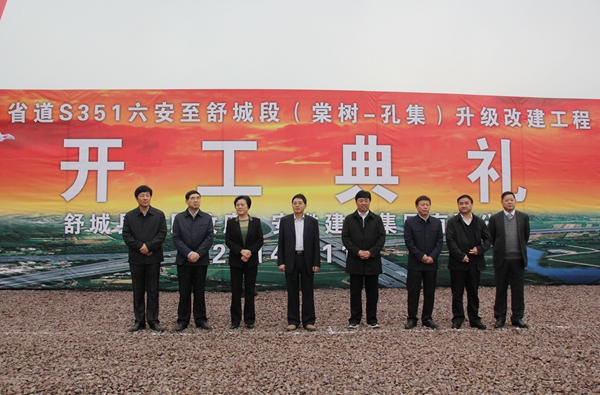 11月6日上午,省道S351六安至舒城段(棠樹至孔集)升級改建工程開工典禮于六安孔集鎮(zhèn)隆重舉行,舒城縣四大領(lǐng)導(dǎo)班子成員、各職能部門及沿線鄉(xiāng)鎮(zhèn)主要負(fù)責(zé)人,建工集團副總經(jīng)理王元曦,公司董事長孫學(xué)軍等出席了開工典禮。