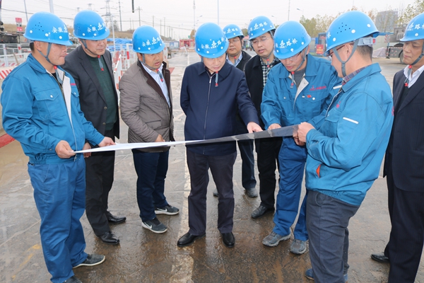 集團(tuán)公司總經(jīng)理助理、工程管理部主任童宗勝,公司董事長、黨委書記、總經(jīng)理孫學(xué)軍,副總經(jīng)理錢申春等陪同。