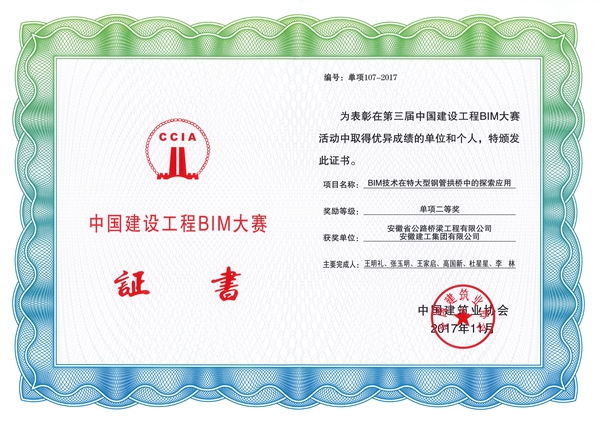 近日,在廈門(mén)召開(kāi)的中國(guó)建設(shè)工程BIM技術(shù)成果經(jīng)驗(yàn)交流會(huì)暨第三屆全國(guó)建設(shè)工程BIM大賽成果展示會(huì)上,由公司選送的《BIM技術(shù)在特大型鋼管拱橋中的探索應(yīng)用》成果,在全國(guó)794項(xiàng)BIM參賽成果中脫穎而出,以?xún)?yōu)異的成績(jī)榮獲“第三屆中國(guó)建設(shè)工程BIM大賽”單項(xiàng)二等獎(jiǎng)。