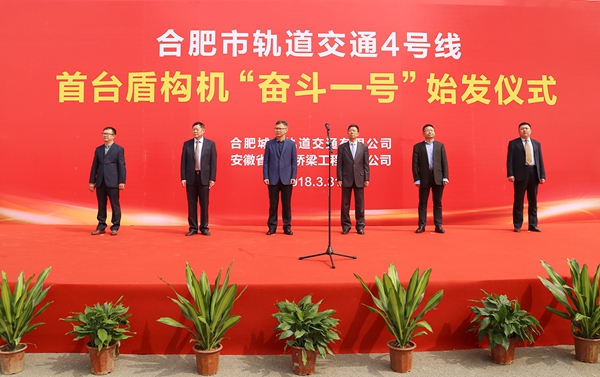 陽春三月生機勃發(fā),奮斗一號掘進始發(fā)。3月31日上午,公司首臺盾構機“奮斗一號”在軌道交通4號線1標長寧大道站順利始發(fā),標志著合肥軌道交通4號線正式進入盾構施工階段。合肥市軌道公司總經理羅斌,安徽建工集團副總經理王厚良,公司董事長、黨委書記、總經理孫學軍等領導和參建單位代表出席始發(fā)儀式。10時16分,羅斌宣布“奮斗一號”正式始發(fā)。儀式結束后,與會領導與專家深入始發(fā)現(xiàn)場、管片存放區(qū)檢查指導。