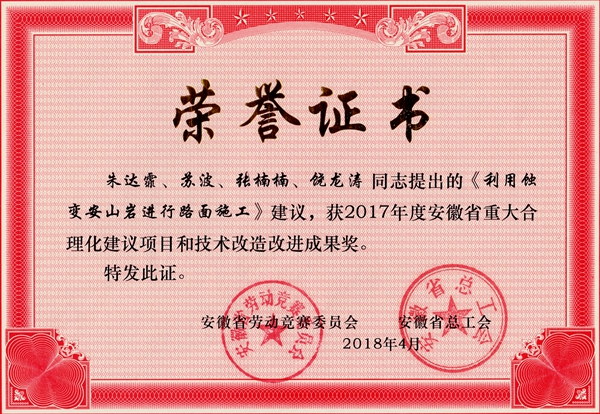 公司14項合理化建議榮獲“安徽省重大合理化建議項目和技術(shù)改造改進成果獎”
