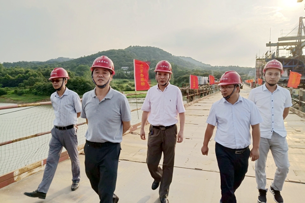 7月31日,集團(tuán)公司黨委委員、副總經(jīng)理、總工程師戴良軍、總工辦副主任崔林釗一行深入公司萬佛湖02標(biāo)項(xiàng)目指導(dǎo)工作,公司黨委委員、副總經(jīng)理、總工程師彭申凱陪同。