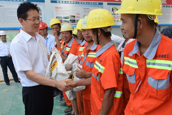 8月3日,淮北市委常委、紀(jì)委書記宰學(xué)明在市紀(jì)委監(jiān)察委和市總工會(huì)相關(guān)負(fù)責(zé)人的陪同下,深入淮北市S101及S254改建工程PPP項(xiàng)目施工現(xiàn)場(chǎng),看望慰問(wèn)公司一線參建人員。