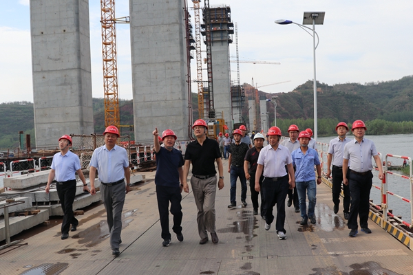 5月30日,河南省交通運(yùn)輸廳黨組成員、副廳長徐強(qiáng)一行在濟(jì)源市副市長李拴根、市交通運(yùn)輸局局長安東利、濟(jì)洛西高速公路建設(shè)有限公司董事長楊新民等陪同下,蒞臨公司承建的濟(jì)洛西高速黃河特大橋項(xiàng)目調(diào)研指導(dǎo)工作。