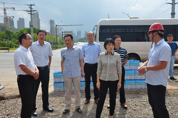 蕪湖縣長韋秀芳一行到S354項目開展“送清涼”慰問 發(fā)布時間:2019年08月12日 來源:市政分公司 發(fā)布人: 作者:文/孫亞南 圖/杜浩偉 瀏覽:3408次 8月9日上午,蕪湖縣委副書記、縣長韋秀芳一行到S354青弋江橋項目開展“送清涼”慰問活動,縣交通運輸局局長許小兵等陪同。 在施工現(xiàn)場,韋秀芳聽取了項目負(fù)責(zé)人關(guān)于施工進(jìn)展和防暑降溫措施落實等方面工作匯報,對高溫天氣下堅守崗位的一線建設(shè)者表示感謝。韋秀芳一行送來了礦泉水等防暑降溫用品,叮囑大家要勞逸結(jié)合,時刻注意身體健康,項目要科學(xué)合理安排施工,確保工作人員在炎熱夏季作業(yè)安全。