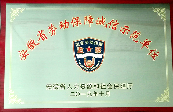 公司榮獲2019年安徽省勞動(dòng)保障誠(chéng)信示范單位