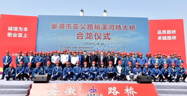 4月26日,由公司承建的皖中新地標巢湖亞父路裕溪河特大橋經(jīng)過2年多的建設(shè)順利合龍。巢湖市副市長張明權(quán)參加合龍儀式并宣布大橋正式合龍,股份公司黨委副書記、副總經(jīng)理孫學(xué)軍,巢湖市重點工程建設(shè)管理中心主任曾瑾、居巢經(jīng)濟開發(fā)區(qū)管委會主任王慶林、巢湖市地方海事處處長 沐小平、合肥市規(guī)劃設(shè)計研究院院長黃從俊,公司領(lǐng)導(dǎo)錢申春、任杰、杜海峰出席合龍儀式。