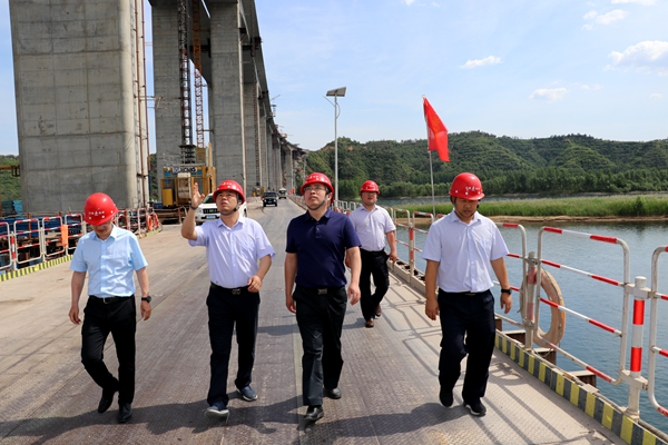 錢總深入施工現(xiàn)場,實地察看了項目工程進展、安全質(zhì)量管控、現(xiàn)場施工組織等情況,詳細詢問了主橋合攏段工期節(jié)點計劃并就進一步加快項目建設(shè)進度進行了部署安排。在項目南引橋,錢總詢問了安全管控手段、進度安排計劃、質(zhì)量保證措施。他強調(diào),黃河特大橋項目位于小浪底庫區(qū)內(nèi),項目部要提高站位,進一步做好綠色文明施工,把項目建設(shè)對黃河生態(tài)環(huán)境的影響降到最低,彰顯國企擔當。